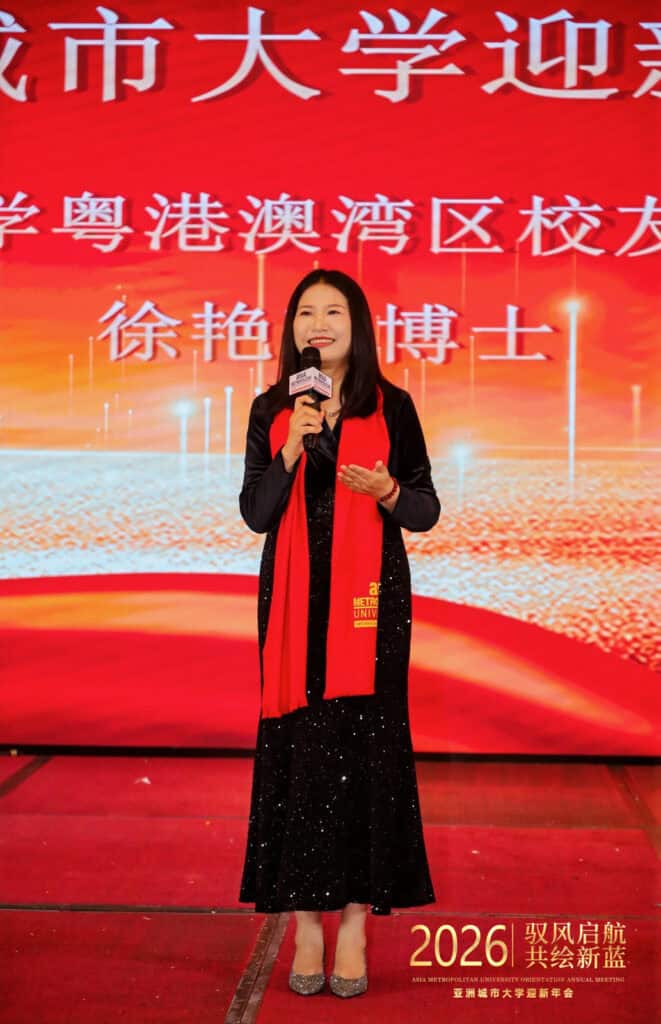 Dr Xu Yanping, Director of the China Representative Office of Asia Metropolitan University and President of the Guangdong–Hong Kong–Macao Greater Bay Area Alumni Association, delivered the opening address. Reflecting on the growth journey of the alumni network, she traced its evolution from humble beginnings to a dynamic and thriving community. She paid tribute to alumni who have consistently pursued excellence with perseverance and demonstrated social responsibility through sustained contribution.